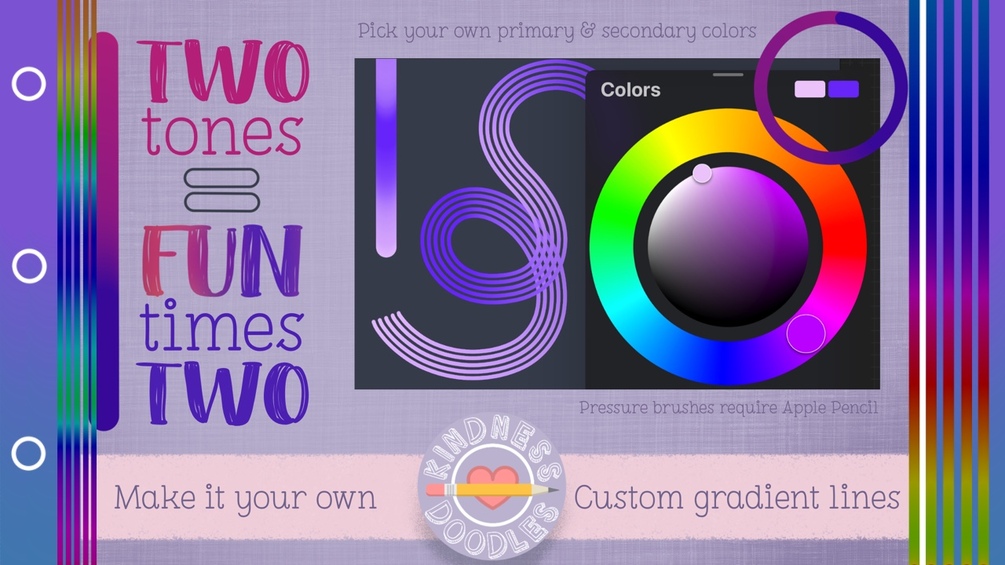Select your own primary and secondary colors for use with the 2-color pressure brushes to create gorgeous custom gradients!